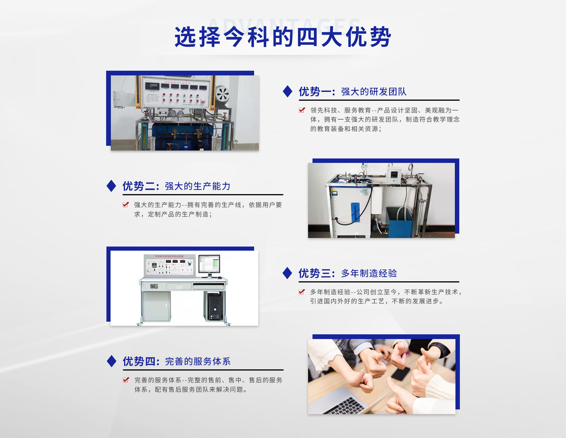 關(guān)于我們鄭州今科教學(xué)儀器有限公司專注于教學(xué)儀器研發(fā)、生產(chǎn)、銷售和技術(shù)服務(wù),擁有一支技術(shù)和教學(xué)精良的人才組成的研發(fā)團(tuán)隊(duì),秉承現(xiàn)代化的管理理念,結(jié)合員工的創(chuàng)造性思維,為行業(yè)客戶的設(shè)備設(shè)計、生產(chǎn)及實(shí)施提供了嚴(yán)密有力的保障。公司已經(jīng)著手大力開展基于互聯(lián)網(wǎng)的虛擬工程教育平臺研發(fā),為高校教育提供更豐富的教育裝備資源。公司秉承“創(chuàng)新今科,科教興學(xué)”的企業(yè)宗旨,以校企合作為契機(jī),圍繞合作院校的背景,打造出一支個性化的技術(shù)團(tuán)隊(duì),為公司的產(chǎn)品保駕護(hù)航。堅(jiān)持技術(shù)來源于學(xué)校,產(chǎn)品服務(wù)于學(xué)校的原則,為高校提供個性化的教學(xué)產(chǎn)品,也服務(wù)于科學(xué)研究院、污水處理、化工廠等一些地方,提供豐富的儀器資源!主要生產(chǎn)環(huán)境工程教學(xué)實(shí)驗(yàn)基地、排水實(shí)驗(yàn)設(shè)備、城市污水實(shí)驗(yàn)設(shè)備、城市生活垃圾處理設(shè)備、大氣凈化、氣體除塵實(shí)驗(yàn)設(shè)備流體力學(xué)熱工、化工原理實(shí)驗(yàn)設(shè)備。擁有強(qiáng)大的技術(shù)團(tuán)隊(duì),而且在業(yè)界的口碑良好,比較受歡迎,以良好的信譽(yù)去服務(wù)客戶,產(chǎn)品也在不...